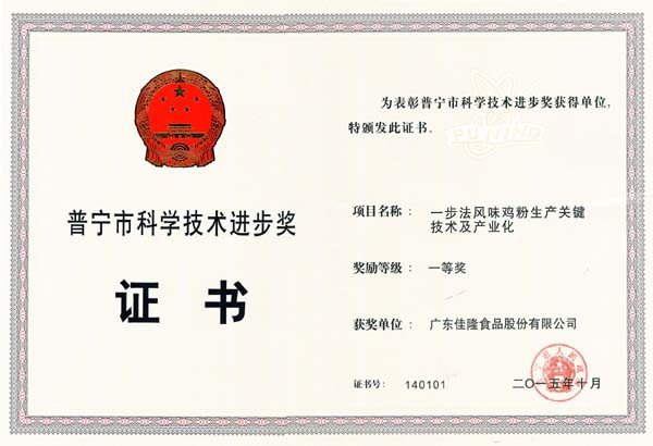 醇真雞粉系列::高新技術產(chǎn)品證書2015